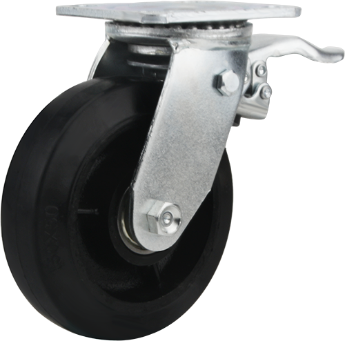 刹车自带解锁踏板,刹车块为尼龙材质,不伤胎面